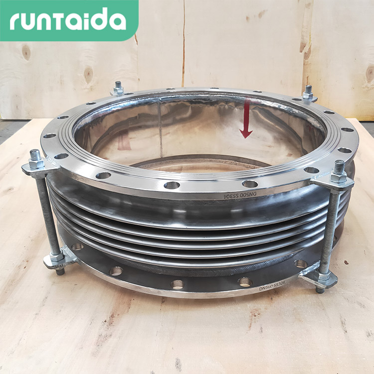 金屬波紋管補償器由波紋管的管坯和兩端的接管連接,根據管道要求選擇焊接還是法蘭連接。本實用主要用于金屬波紋管上的剛性支撐或運輸過程中產品作變形調整,并非承載件。本實用結構簡單,價格低廉,因此優先選用。針對現場情況有些金屬波紋管需要增加導流筒,一般的導流筒安裝在金屬波紋管內部,主要是為了減少高速流體引起波紋管結構振動,起到保護波紋管的作用。